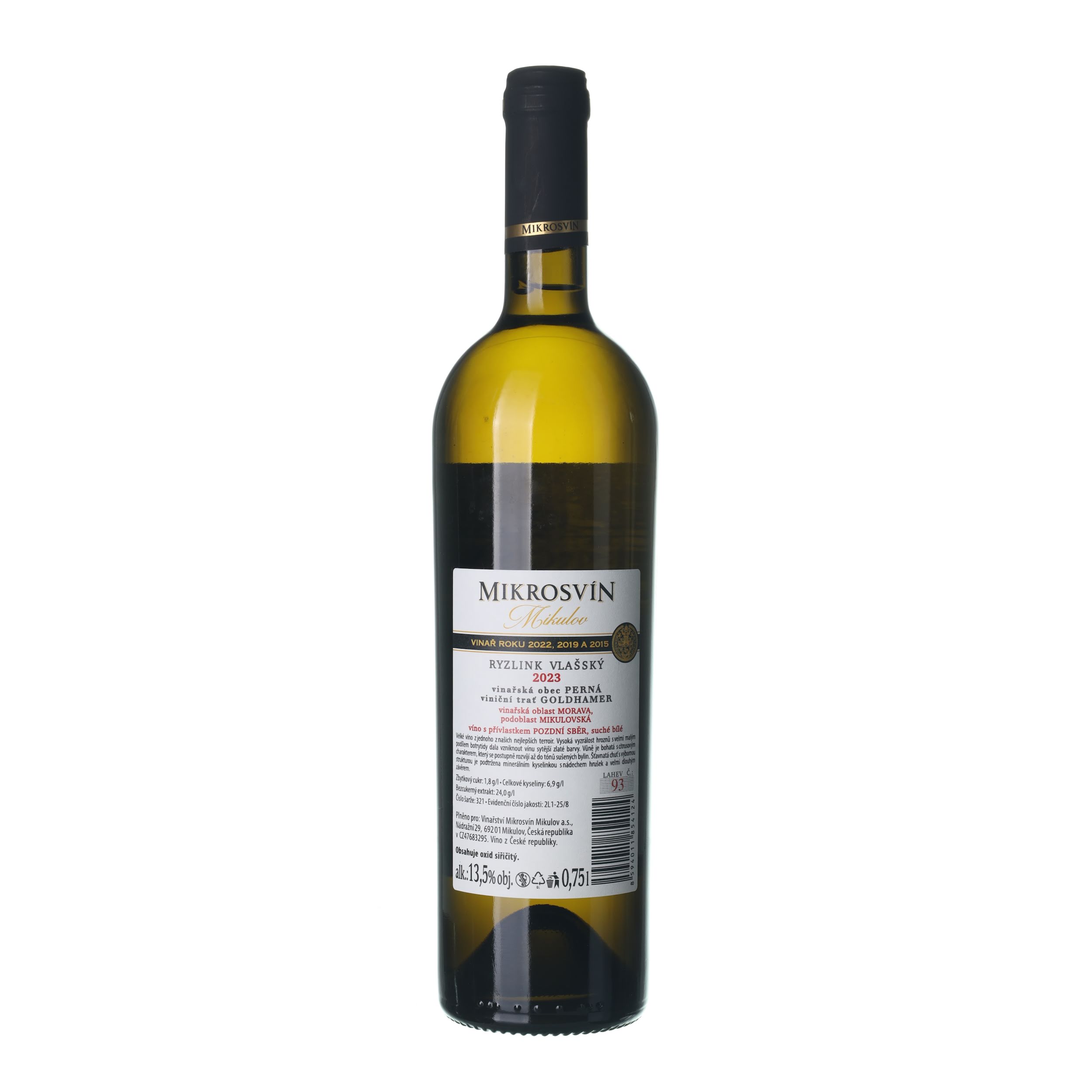 2023 Rizling vlašský Neskorý zber Perná, Goldhamer Mikrosvín Mikulov (0,75l)