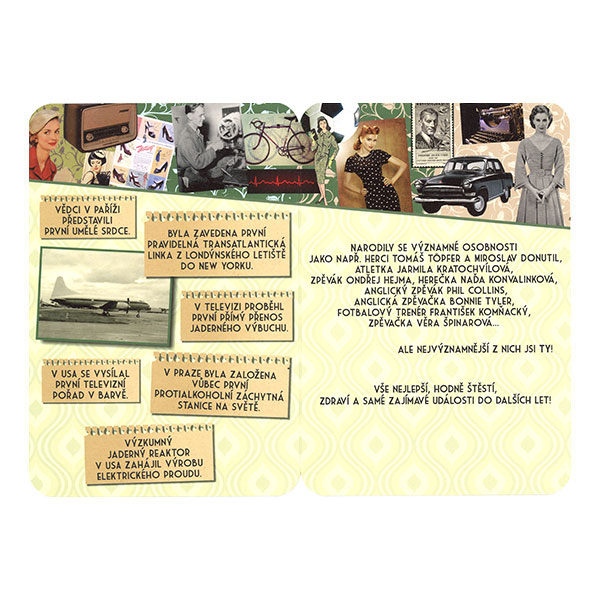 Retro pohlednice obsahující zajímavé informace, události a osobnosti narozené v roce 1951 z Československa a celého světa.