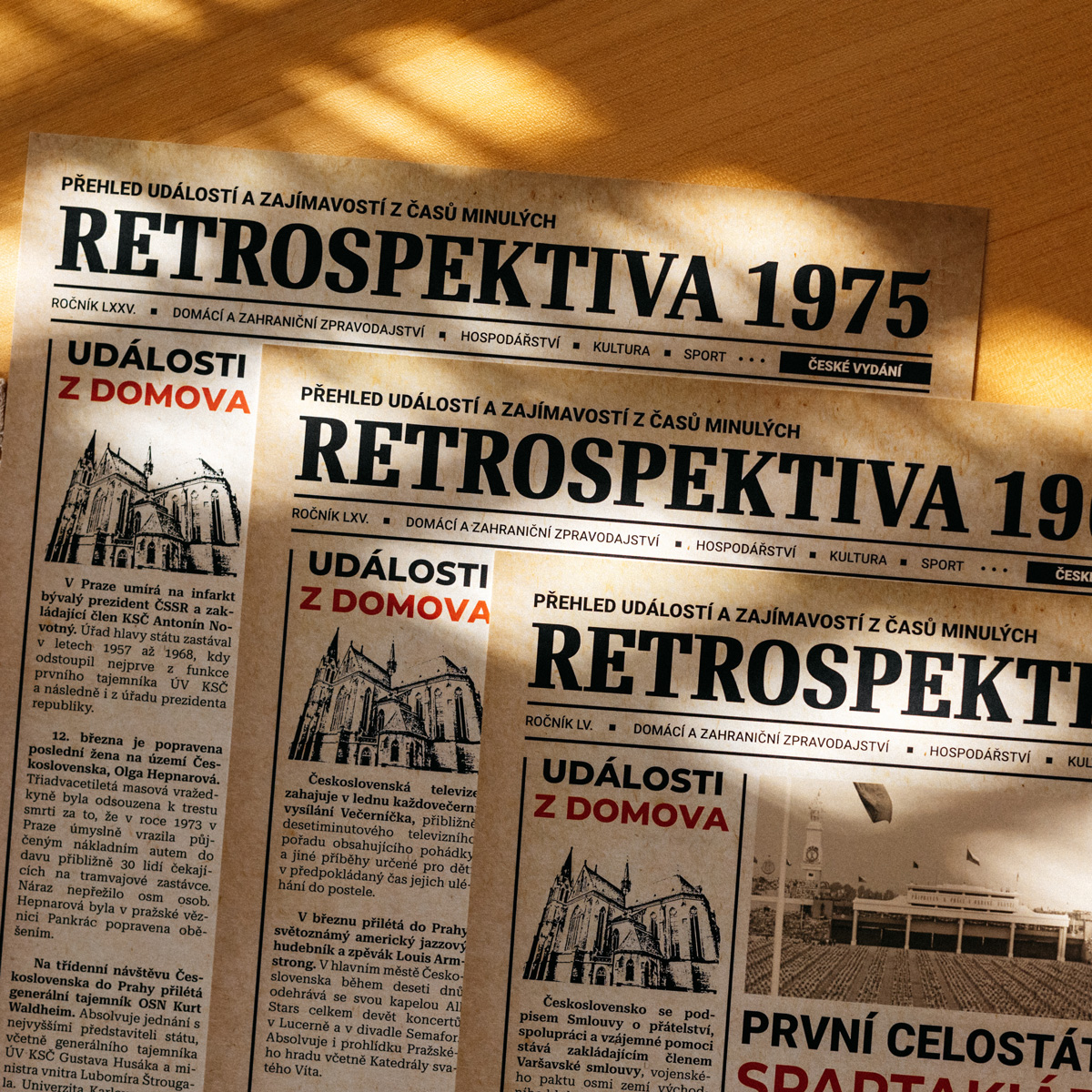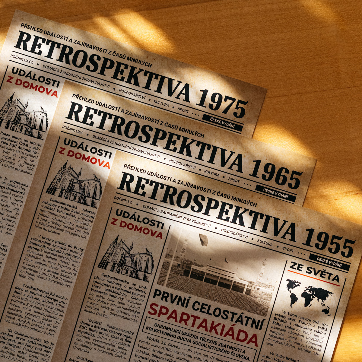*** Aktuálně jsou dostupné retrospektivy jen pro roky 1954, 1955 , 1964, 1965, 1974, 1975, 1984, 1985, 1994 a 1995, na dalších letech usilovně pracujeme - děkujeme za pochopení! ***Které události hýbaly světem? Bylo za socialismu opravdu všechno levnější? Kteří političtí lídři vládli světovým mocnostem? Kolik lidé vydělávali? Jaká jména dávali rodiče nejčastěji svým dětem? Na tyto a spoustu dalších otázek dostanete odpověď v naší exkluzivní retrospektivě.